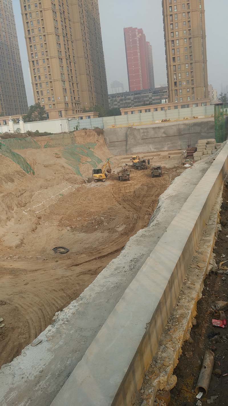 位于正義街以西、勝利大街以東,中山路以南、民生路以北,有6棟高層住宅,地下3層地上33層,基坑大開挖,開完深度11米,采用護(hù)坡樁和土釘墻支護(hù)。